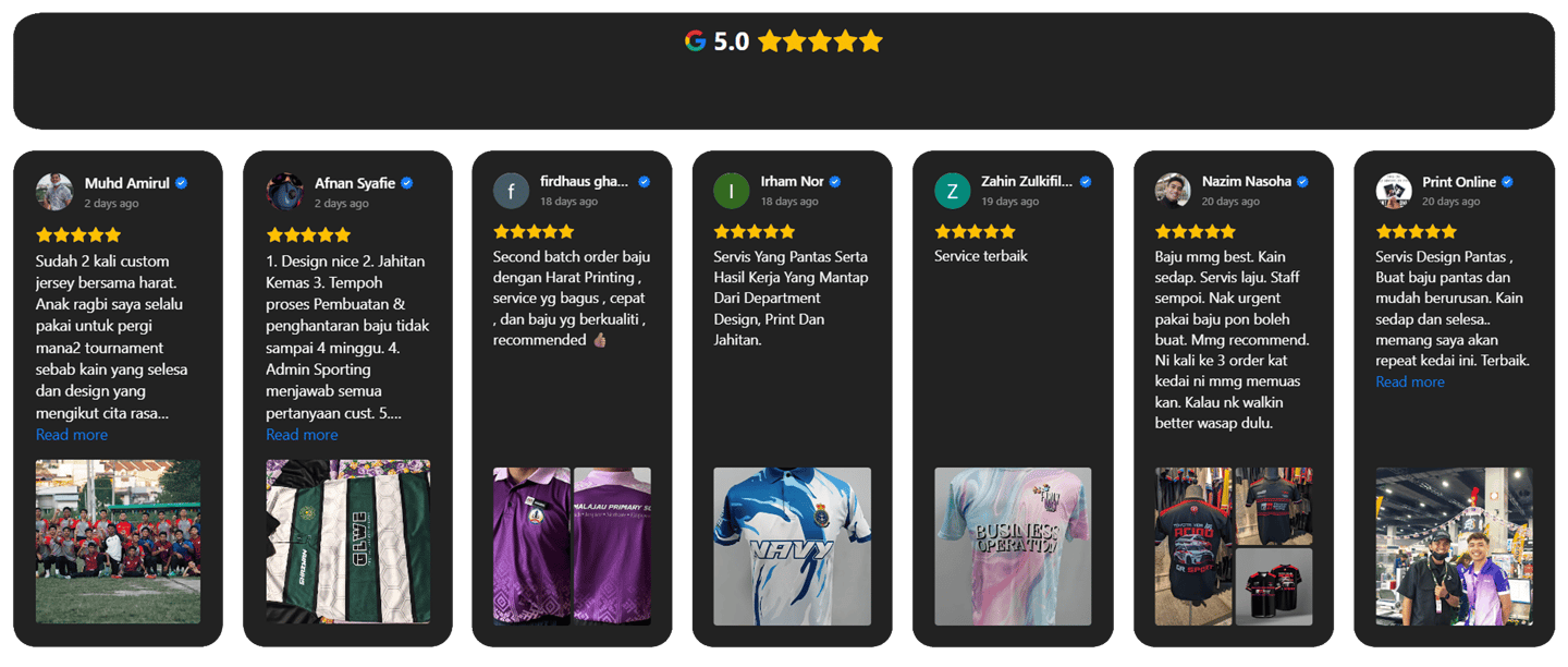 We are very passionate about creating custom jerseys from design to garments to production, ensuring each design and material meets our customers' comfort needs and satisfaction. Every process will be monitored, and daily updates will be provided throughout the production process.